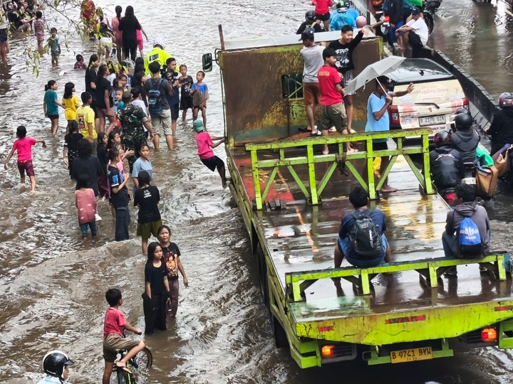Ruas-ruas jalan yang dalam kondisi normal dipadati oleh deretan kendaraan yang bergerak cepat, kini menampilkan pemandangan yang sangat berbeda. Sebagian besar area jalan tampak kosong dari lalu lintas yang biasa, digantikan oleh hamparan air keruh yang meluas. Namun, kekosongan ini tidak berarti aktivitas berhenti total. Justru, sebuah fenomena unik dan tak terduga muncul: genangan air tersebut telah menarik “penguasa baru” yang ceria. Mereka adalah sekelompok anak-anak, yang dengan riang gembira, telah menjadikan jalanan yang terendam banjir sebagai taman bermain pribadi mereka. Kehadiran mereka menciptakan kontras yang mencolok antara kesulitan yang dialami orang dewasa dan kebebasan yang dirasakan oleh anak-anak, mengubah bencana menjadi kesempatan untuk bersenang-senang.