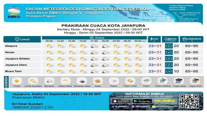 | Jayapura Utara | Hujan Ringan | 24 – 27 | 76 – 90 |
