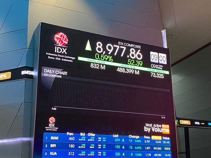 Perdagangan di Bursa Efek Indonesia (BEI) pada Kamis, 22 Januari, dibuka dengan catatan positif, menandai awal sesi yang optimis bagi para pelaku pasar. Indeks Harga Saham Gabungan (IHSG) dilaporkan bergerak stabil di zona hijau, sebuah indikasi awal yang menggembirakan. Kenaikan yang tercatat pada pembukaan sesi perdagangan ini adalah sebesar 43,421 poin, yang setara dengan penguatan sebesar 0,48 persen. Dengan demikian, IHSG berhasil menembus level 9.053,751 pada saat pembukaan resmi perdagangan.