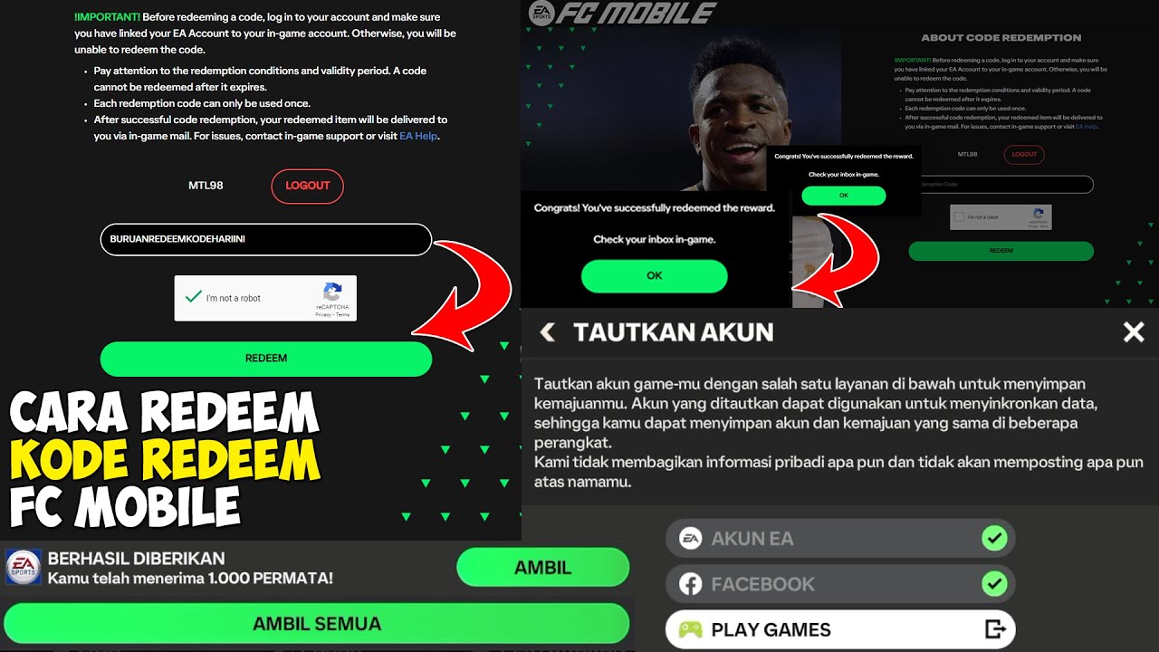 - Buka aplikasi FC Mobile di ponsel Anda. Hadiah biasanya akan langsung muncul melalui pesan masuk (in-game mail) atau langsung ditambahkan ke saldo Gems dan koin Anda.