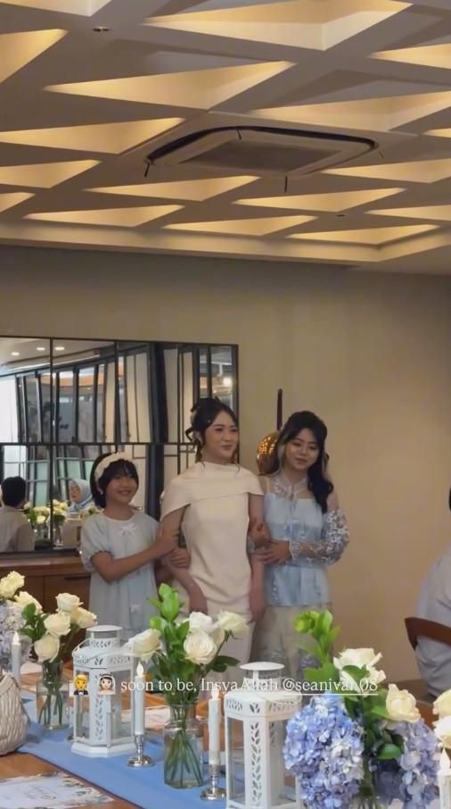 Salah satu momen paling mengharukan dalam prosesi lamaran adalah ketika Nadya, sang calon mempelai wanita, melangkah anggun menuju kursi lamaran. Dalam balutan busana yang memancarkan pesona dan keanggunan, Nadya didampingi oleh anggota keluarganya, yang dengan bangga mengiringi setiap langkahnya. Kehadiran keluarga yang mendampingi Nadya bukan sekadar formalitas, melainkan simbol kuat dari restu dan dukungan penuh yang diberikan oleh orang-orang terkasih. Raut wajah Nadya memancarkan campuran antara rasa haru, bahagia, dan sedikit gugup, sebuah ekspresi alami dari seseorang yang akan segera mengikat janji sehidup semati. Setiap langkah yang diambilnya seolah membawa harapan dan impian masa depan, menuju babak baru dalam kehidupannya bersama Sean Ivan. Momen ini juga menjadi refleksi dari tradisi dan nilai-nilai budaya yang menghargai peran keluarga dalam setiap tahapan penting kehidupan, terutama dalam ikatan pernikahan.