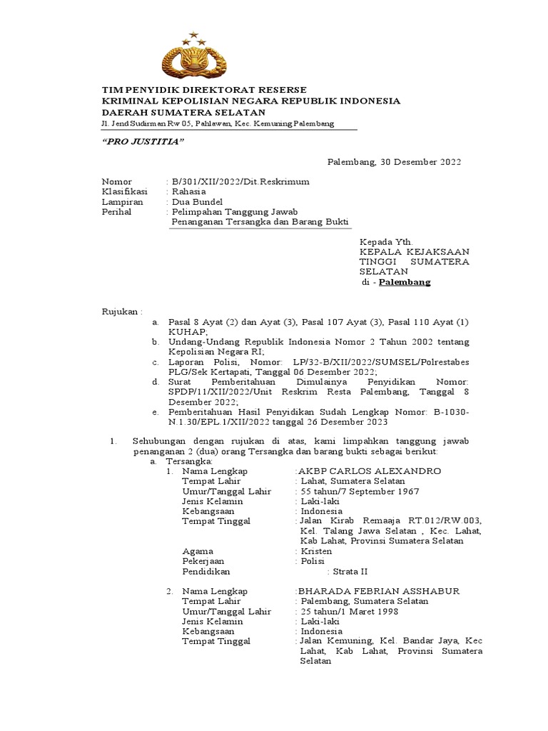 Pelimpahan Tersangka Dari Kepolisian Ke Kejaksaan | PDF