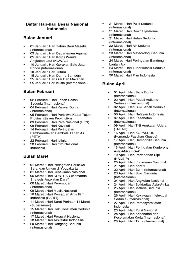 - 1 Mei: Hari Buruh Sedunia – Mengenang perjuangan pekerja untuk hak-hak mereka.