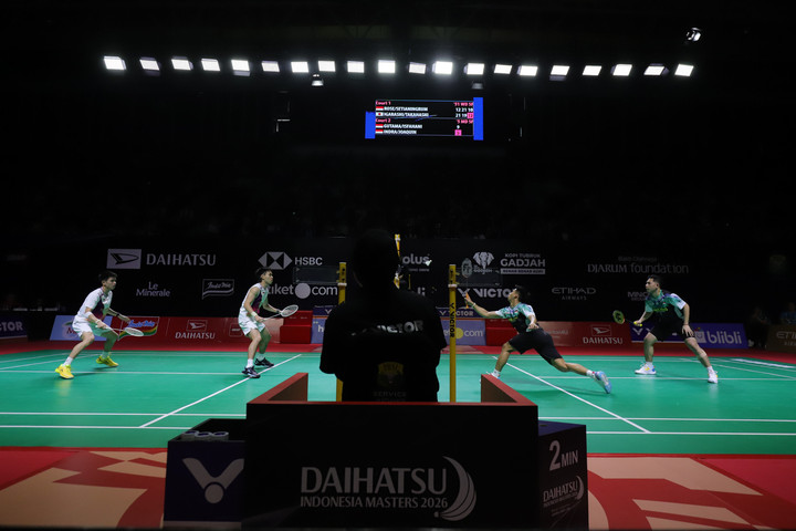 Pertarungan sengit mewarnai babak semifinal turnamen bergengsi Indonesia Masters 2026 yang diselenggarakan di Istora Senayan, Jakarta, pada Sabtu (24/1). Dua pasangan ganda putra Indonesia, Raymond Indra/Nikolaus Joaquin dan Sabar Gutama/Reza Pahlevi, saling menunjukkan kebolehan mereka di hadapan ribuan penonton yang memadati stadion. Momen krusial ini menjadi penentu siapa yang berhak melaju ke babak puncak, memperebutkan gelar juara.